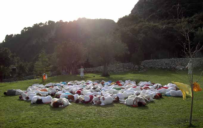 We laid down on the ground and formed the petals of a large Lotus. A strong white light appeared over our Lotus. We could feel the deepest Lotus Love melting through us into the core of the earth.